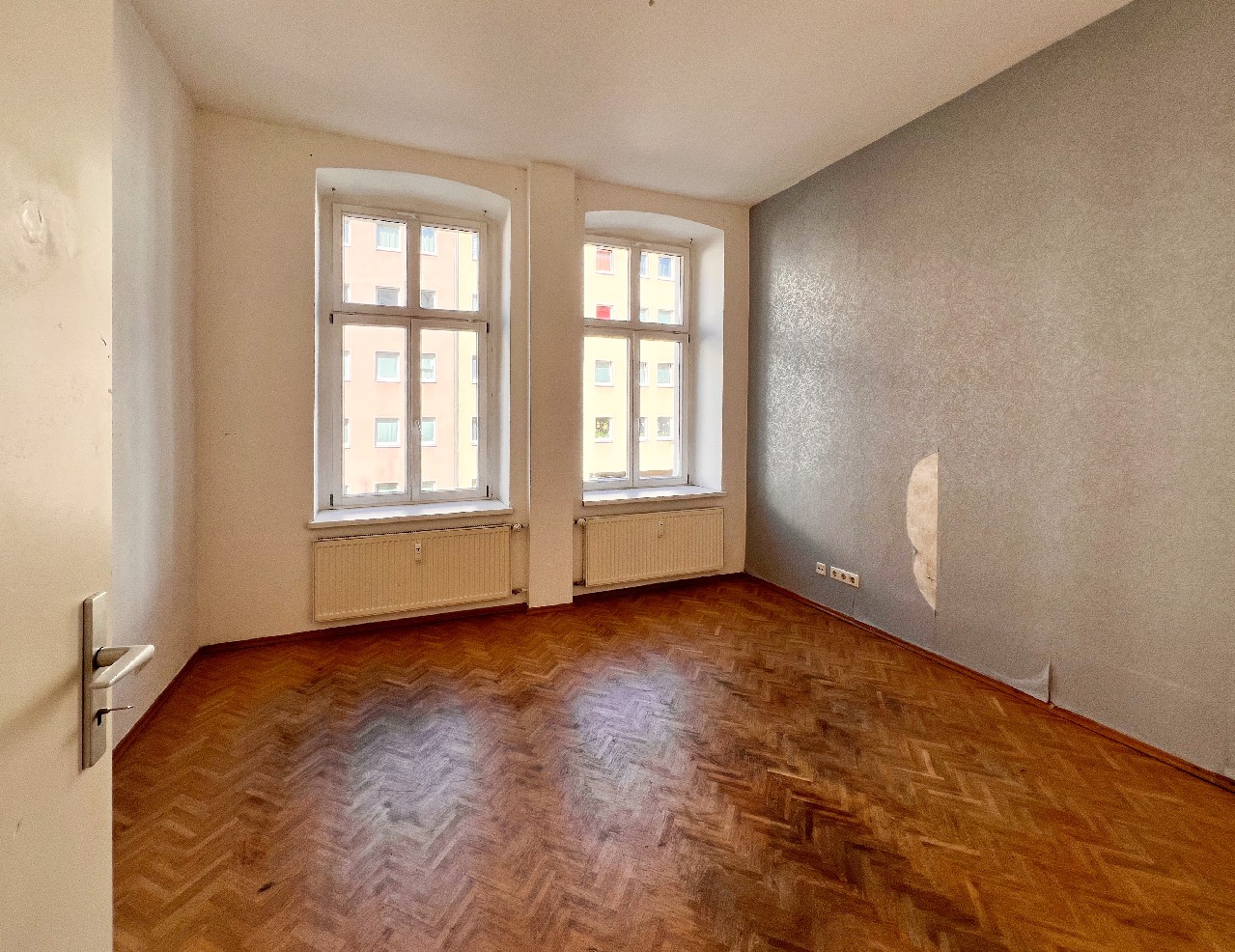 The apartment impresses with its classic old building charm featuring high ceilings, real wood parquet flooring, and a well-thought-out room layout: Two spacious rooms, a bathtub, and a separate toilet ensure a high level of living comfort.