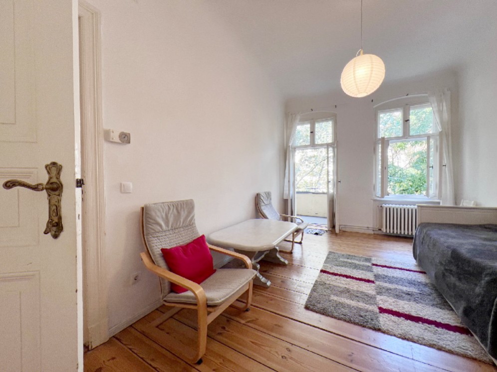 Diese schöne Altbauwohnung verzaubert mit ihrem warmen Dielenboden, der Einbauküche und dem gemütlichen Balkon. Die vollständige Möblierung und die liebevollen Details schaffen eine gemütliche und einladende Atmosphäre.