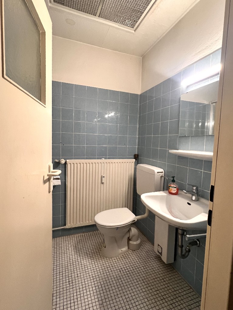 Das Badezimmer ist mit einer Dusche ausgestattet. Die Wohnung ist sanierungsbedürftig und bietet damit ideale Voraussetzungen für Käufer, die ihre eigenen Vorstellungen und Ideen verwirklichen möchten.